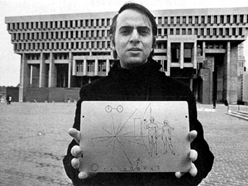 【承前】若き30代のカール・セーガン氏が手にしているのは「パイオニア・プラーク(Pioneer plaque)」と呼ばれる、パイオニア探査機の金属銘板である。 パイオニア探査機の金属板(略)この金属板は1972年と1973年に打ち上げられた宇宙探査機パイオニア10号…